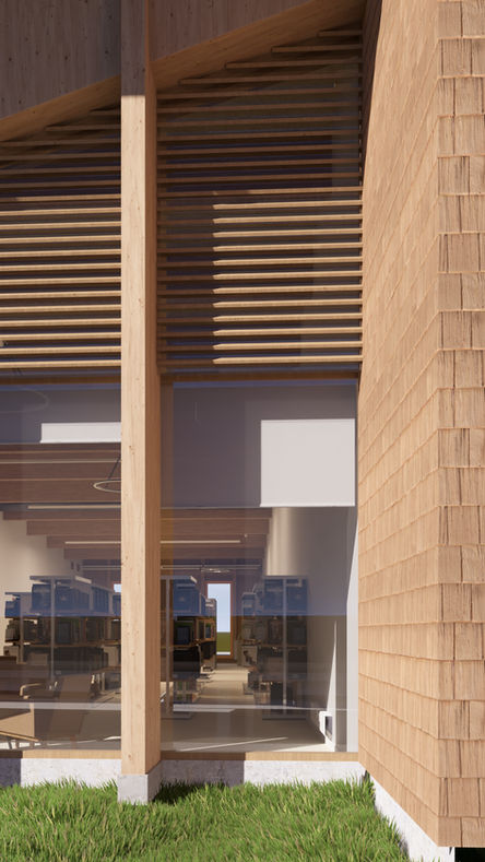 Le Tiers-Lieu, baptisé la «Maison des Ateliers», a pour vocation de devenir le lieu fédérateur au cœur du campus. Il est la transcription architecturale de l’évolution des techniques et de la conscience environnementale. Le parti-pris du